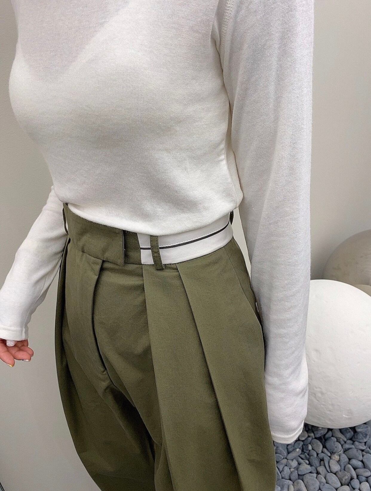 ハイウェストデザインなのでウェストがキュッとしまった印象で足長効果が高いです。