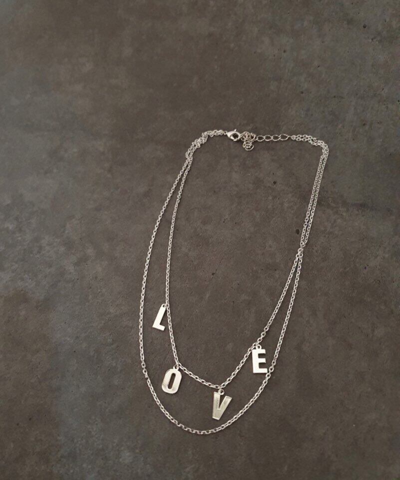 デコルテにLOVEの文字が浮かび上がるネックレス