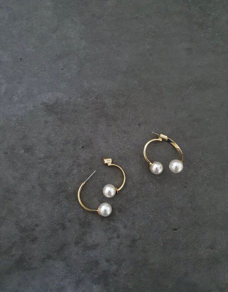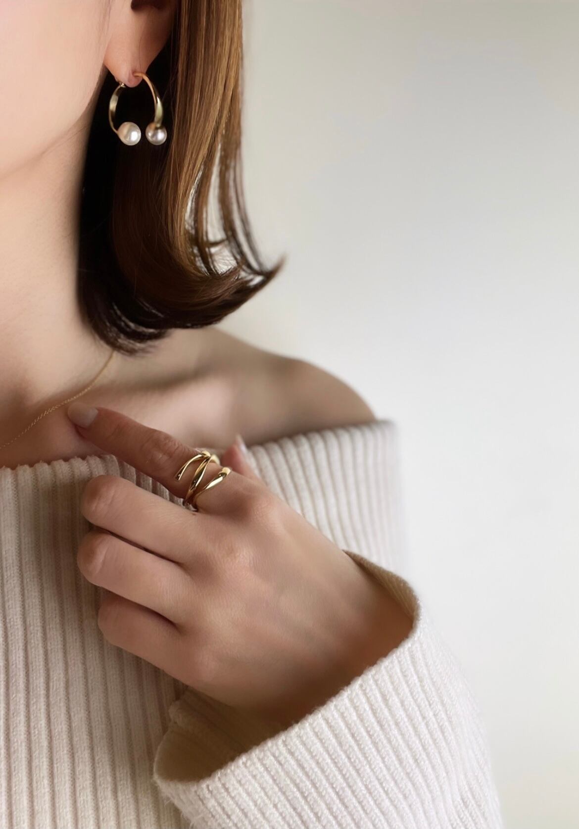 2つのパールが入れ違いのフープになったオシャレなデザイン。