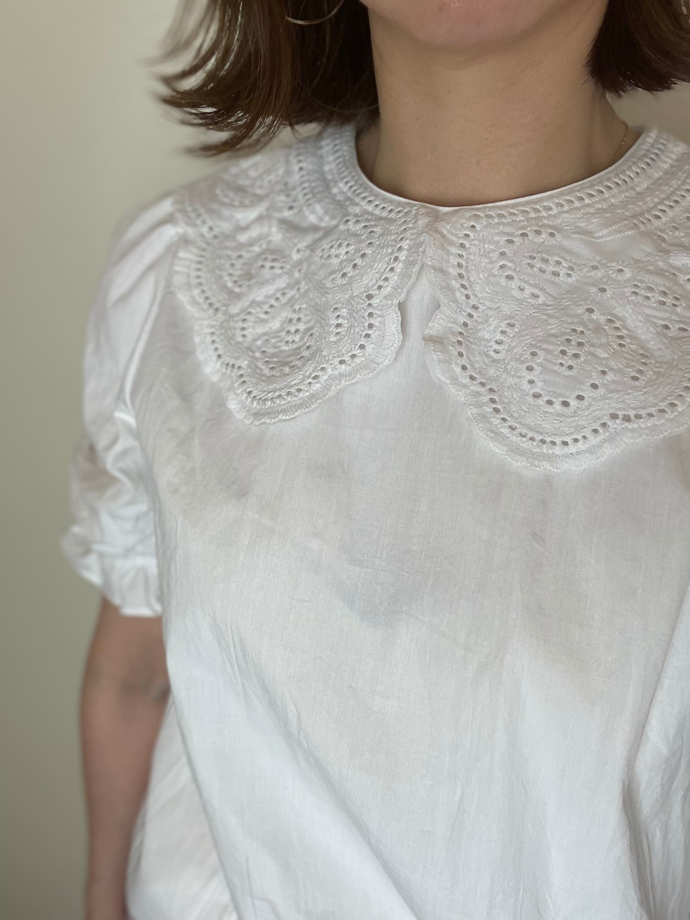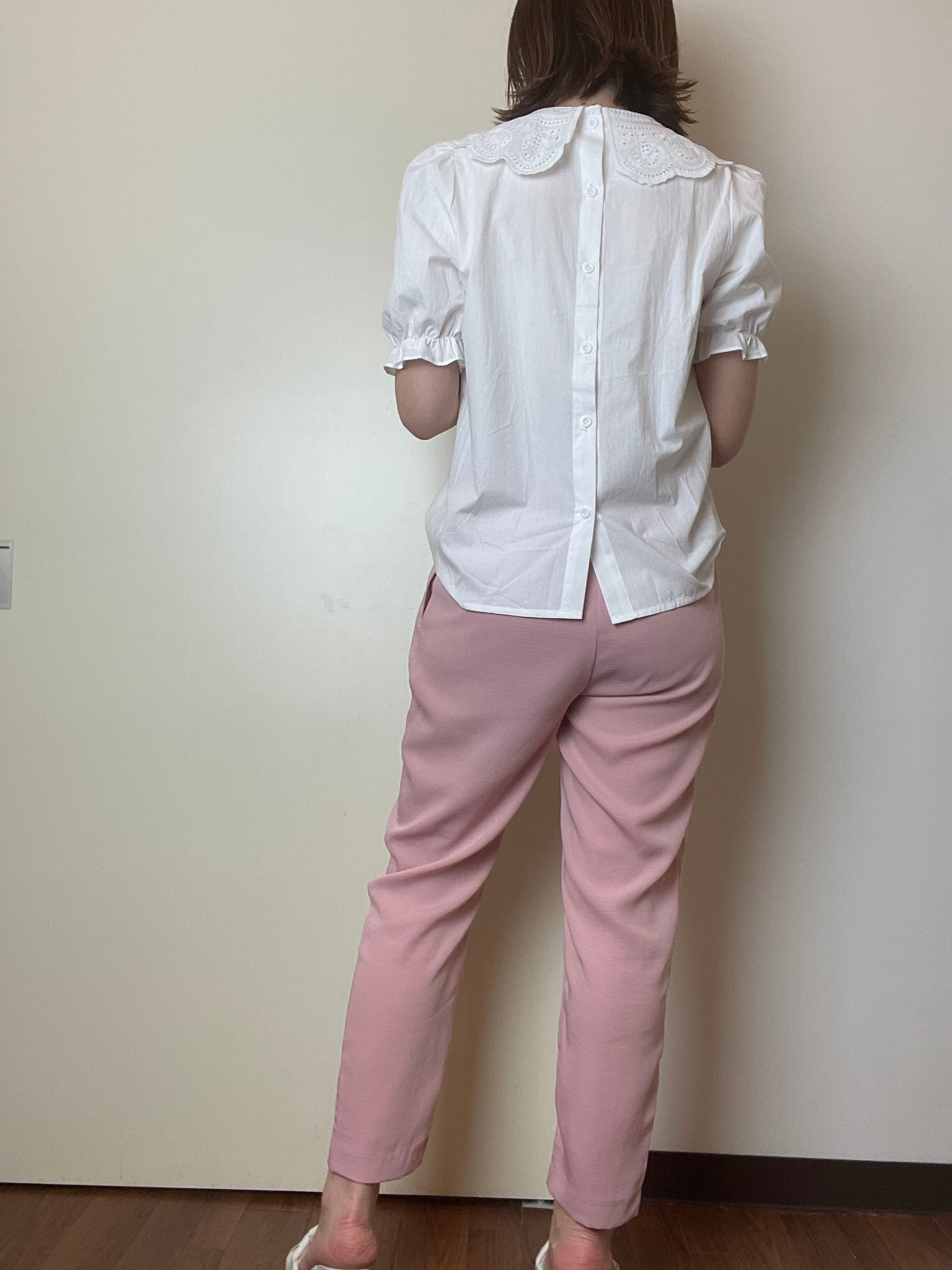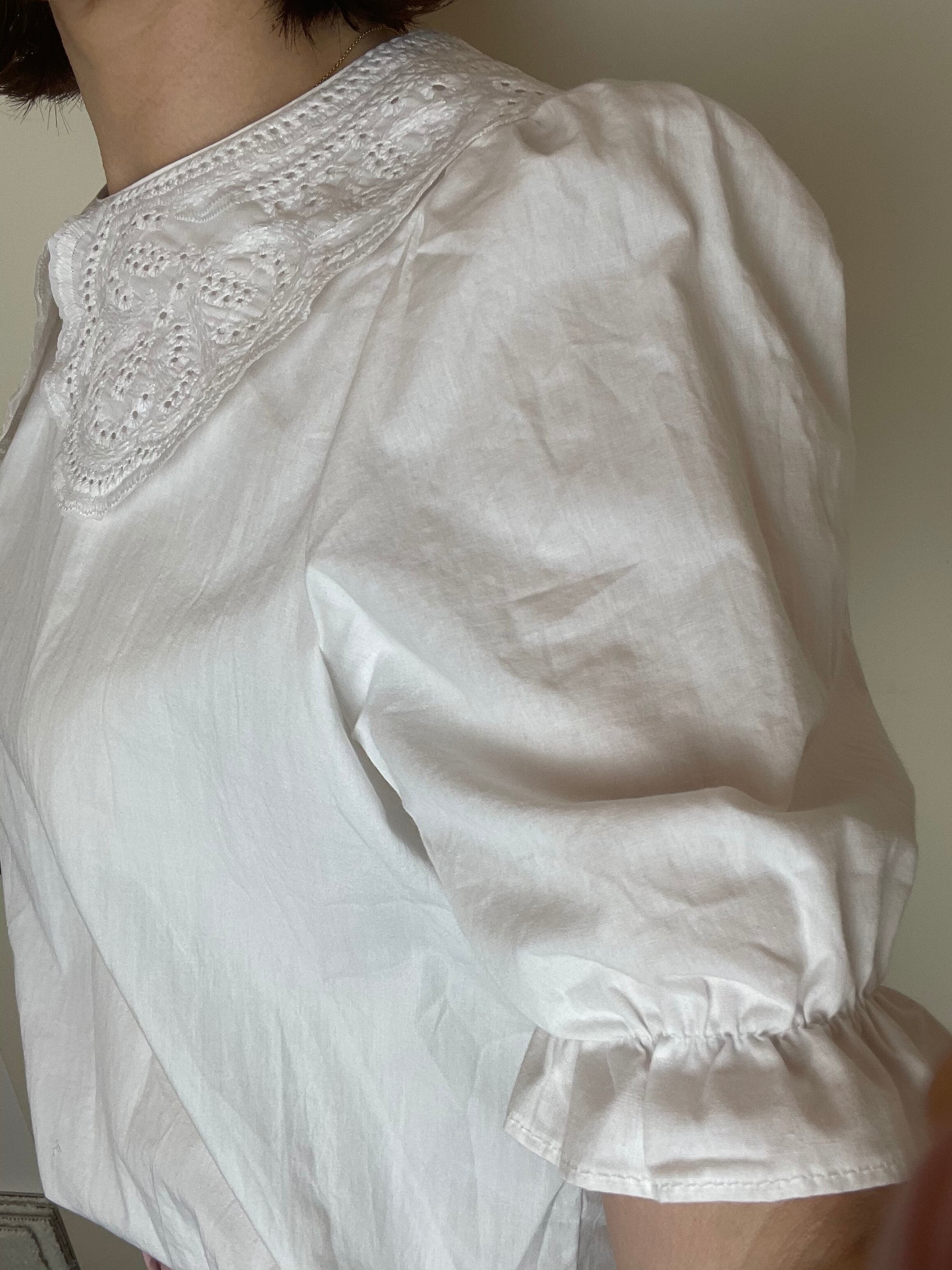 コットンレースの襟とパフスリーブが可愛いブラウス。