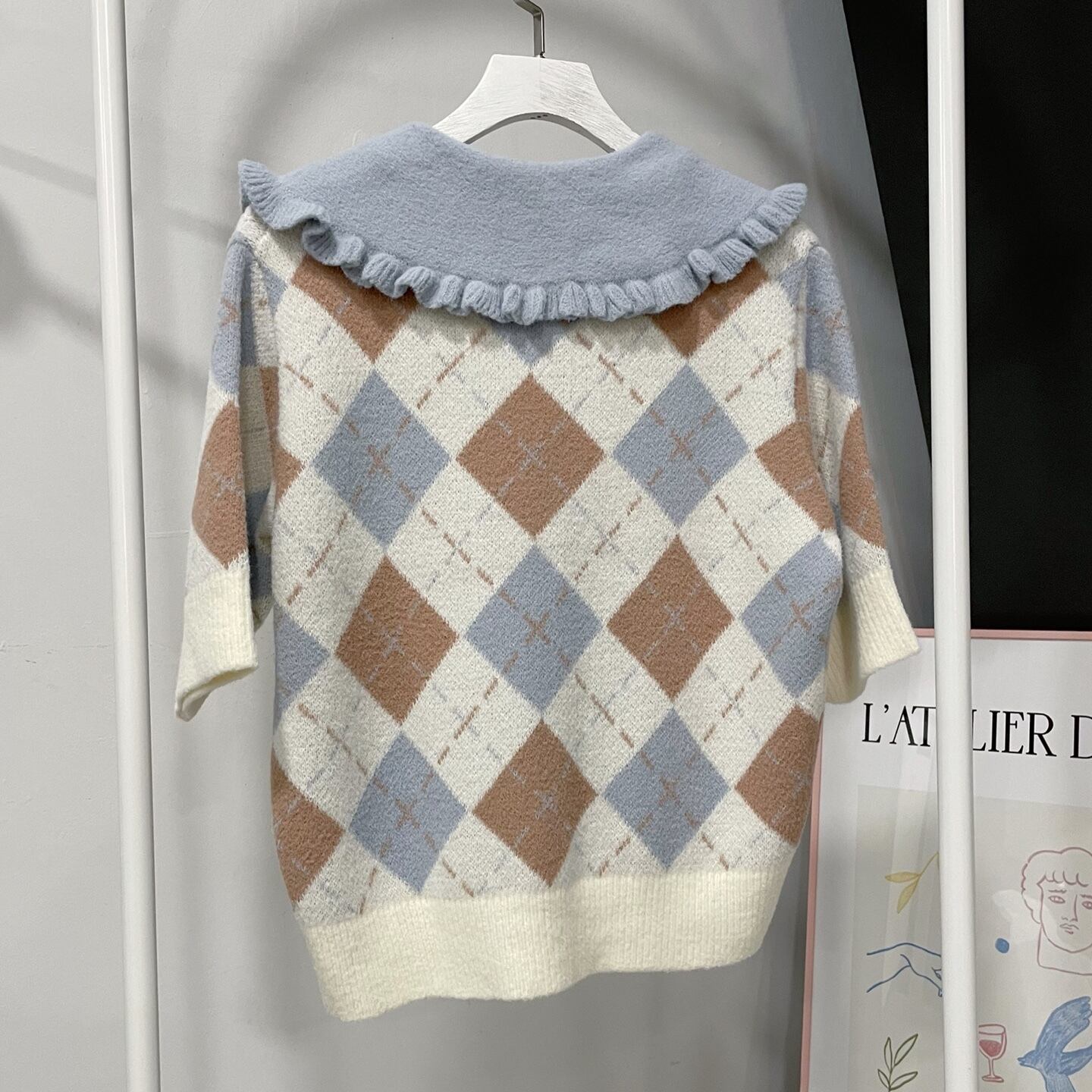 とても可愛い、アーガイル柄の半袖丈ニットです!
