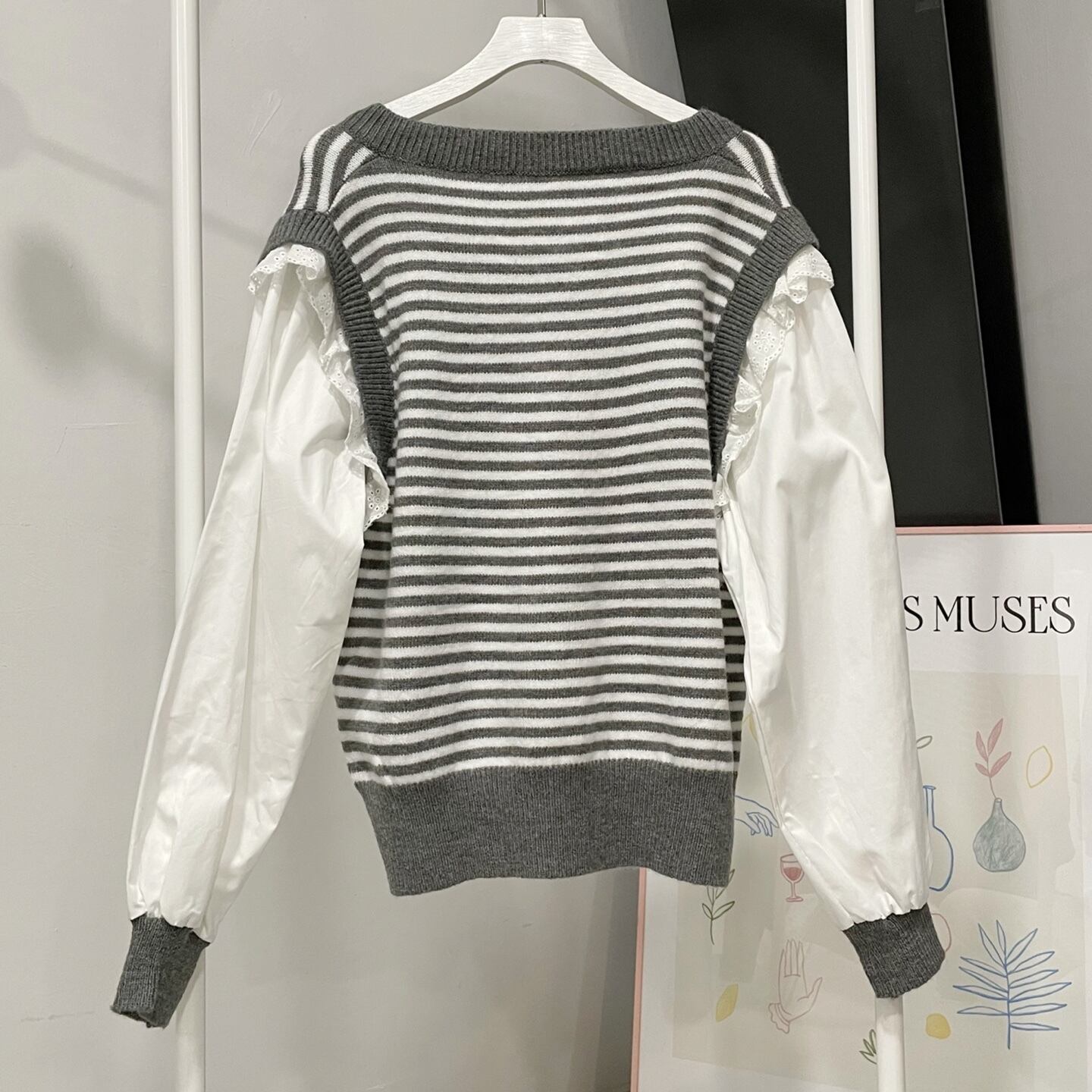 カジュアルなボーダーラインと、アームホール部分のレースがポイント‼︎