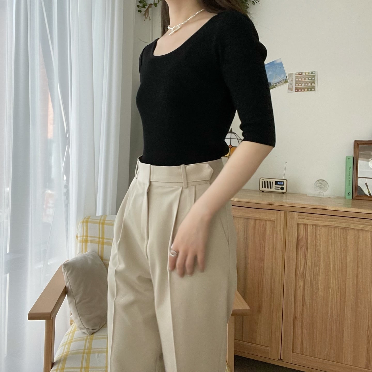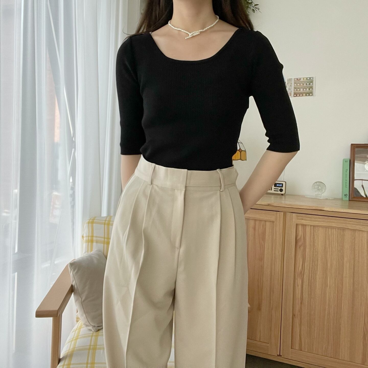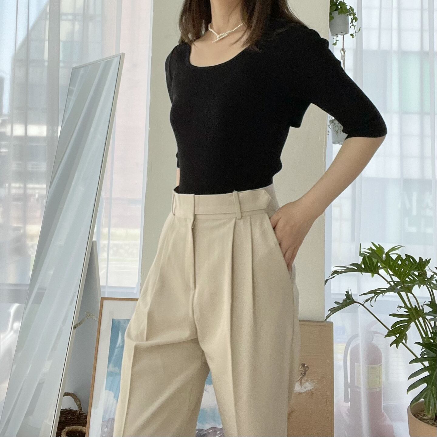 スラックスと合わせたら◎ デニムやスカートなどにも合わせてみては。