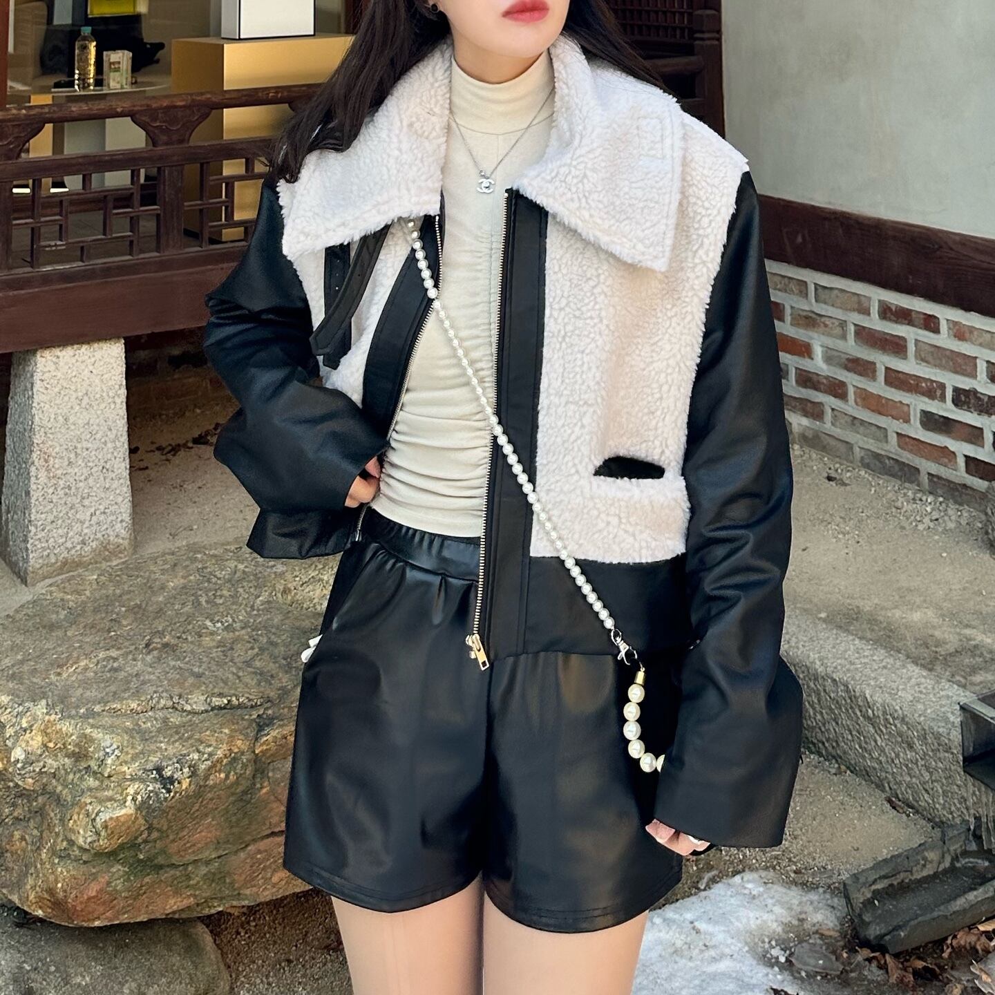 レザージャケットが負担な方にピッタリで、ボア部分で可愛らしさも+